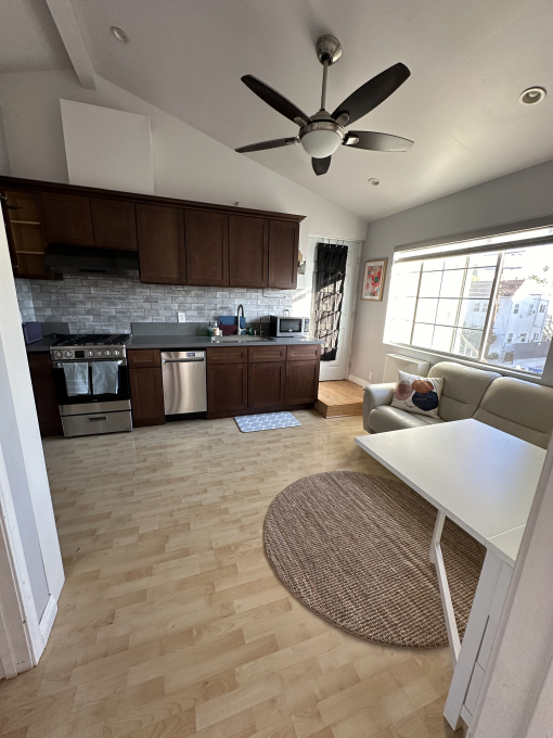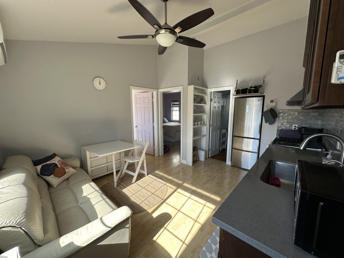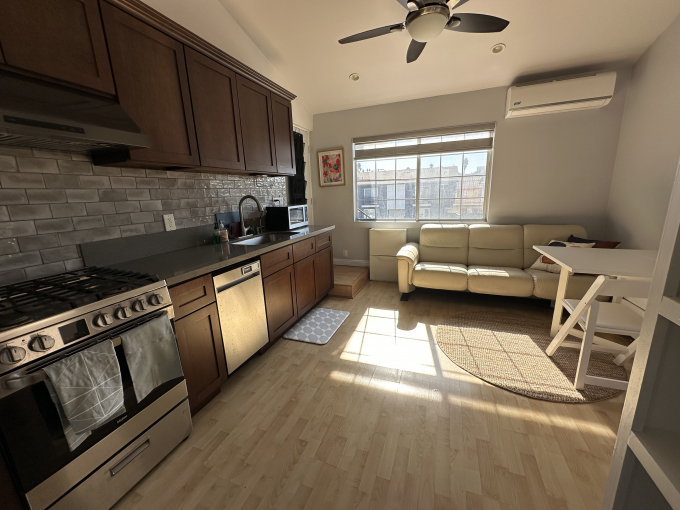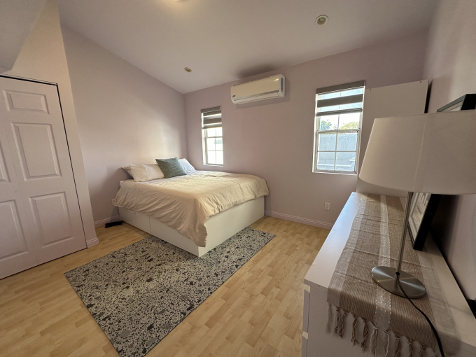 Small, comfortable renovated upstairs apartment with 1 bedroom, 1 office/guest room with couch/futon, full kitchen with gas stove. Mini split heater / air conditioning. Fully furnished and ready to move in.