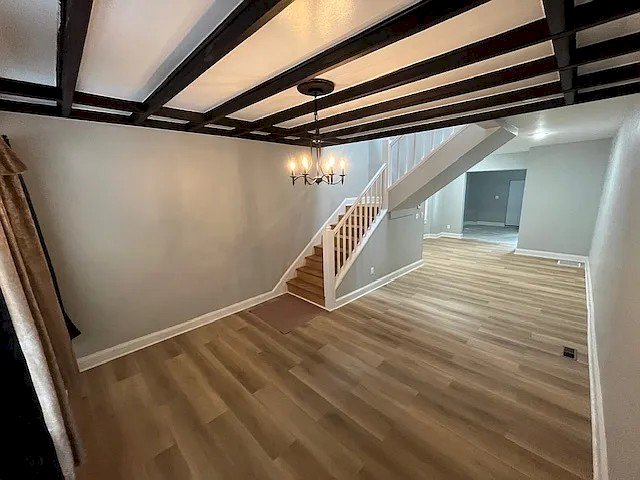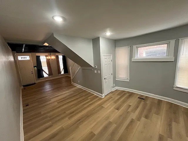 This completely renovated home features 3 bedrooms and 1.5 bathrooms, blending contemporary comfort with timeless appeal. Experience a spacious open-concept design with the following home features: * Modern coffered tall ceilings creating an open, dramatic grand entrance into the home * Security system * Hardwood and tile flooring * Natural lighting staircase * Newly renovated kitchen * Newly renovated bathroom * Hookups for laundry washer and dryer * Backyard access This smoke-free property is 10-15 minutes away from The Baltimore Zoo, Coppin State University, University of Maryland Baltimore Downtown Campus, Oriole Park at Camden Yards, and the lively Downtown Baltimore. House Tours (as of October 1): Saturdays: 11 a.m. - 12 p.m. Please schedule a time at least 1 day in advance.